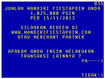 Setiap transaksi dengan kartu bank mandiri kapanpun dimanapun termasuk di luar negeri anda akan mendapat fiestapoin yang bisa anda tukar langsung dengan berbagai barang yang anda butuhkan di semua tempat belanja bertanda fiestapoin sesuai dengan jumlah reward anda. 2 tukar 250 diamonds dengan 250 fiestapoin di katalog fiestapoin. Semakin besar transaksi yang kamu lakukan tentunya makin besar pula fiestapoin mandiri yang bisa kamu.