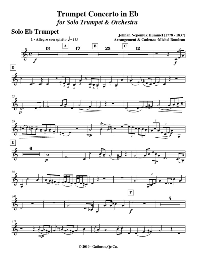 Version for trumpet and piano. Trumpet concerto in e flat major solo trumpet part author. The concerto in e flat major by johann nepomuk hummel was written in for the inventor of the keyed trumpet anton weidinger.