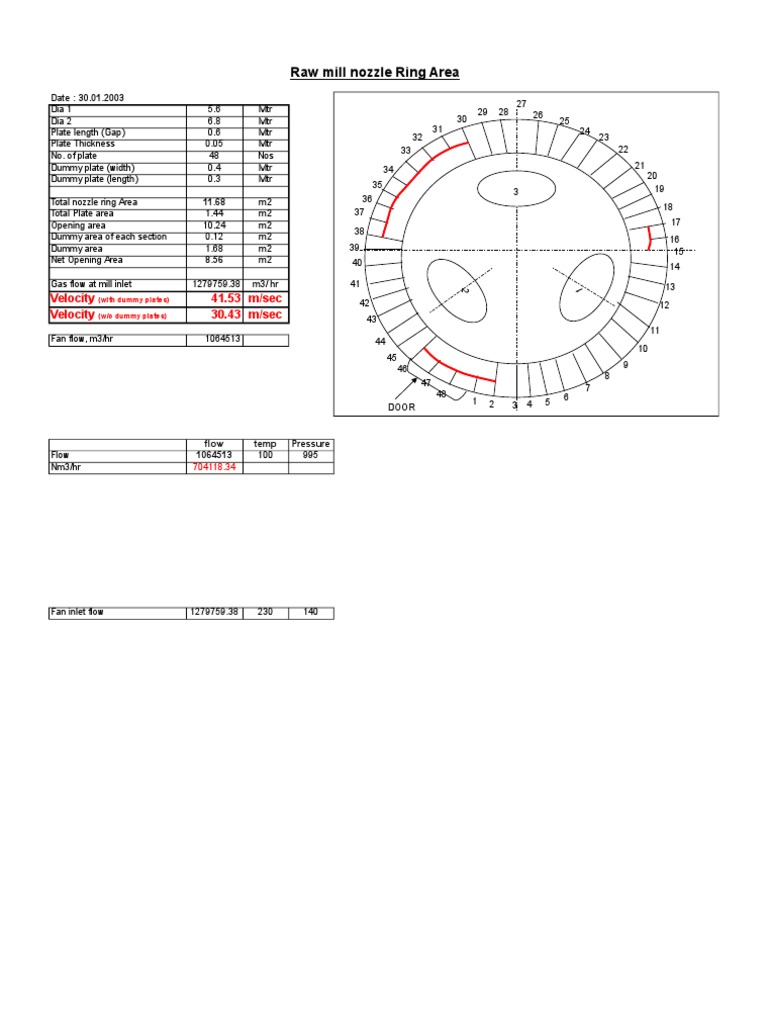 Calculation air speed in nozzle ring 2 f r o l l e r w nozzle l nozzle a nozzle a nozzle l x w x cos alfa x no nozzles m2 alfa v air v air v after classifier am3h typical. How to nozzle ring area for vrm. This article provides calculation methods for correlating design flow rate and pressure loss as a fluid passes through a nozzle or orifice.